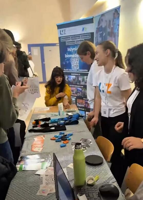 Podczas wydarzenia dużym zainteresowaniem cieszyły się zarówno wykład dr hab. inż. Katarzyny Arkusz, prof. UZ, pt. „Inżynieria biomedyczna w akcji – pomóc ludziom i zwierzętom”, jak i stanowisko Koła Naukowego BiomedUZ.